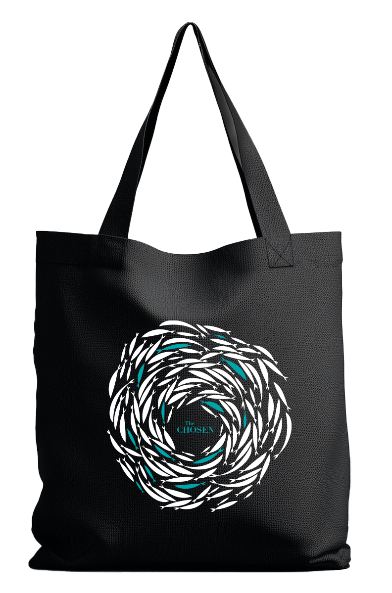 Zwarte vilten tas met als opdruk het bekende ‘The Chosen’-logo. De tas is ongeveer 41 cm × 33 cm. Leuk als cadeau of voor jezelf om mee te nemen op je dagje uit!